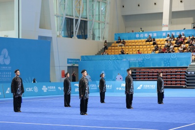 本届全运会群众展演太极拳决赛汇聚了全国16个省市的56支顶尖队伍,竞争尤为激烈。在三十二式太极剑项目比赛中,山东队将太极“刚柔并济、行云流水”的精髓融入每一招式之中,动作舒展大气、精准到位,兼具韵律感与规范性,既彰显出太极深厚的文化底蕴,也契合现代体育竞技的严谨要求。凭借整场出色而稳定的发挥,我院教师所在的山东队最终成功摘得该项目铜牌。