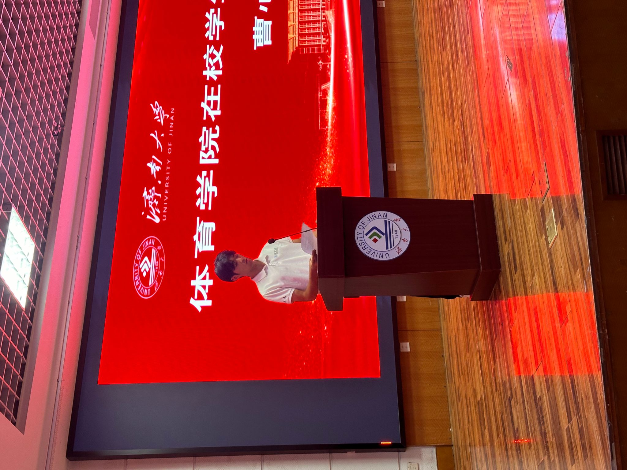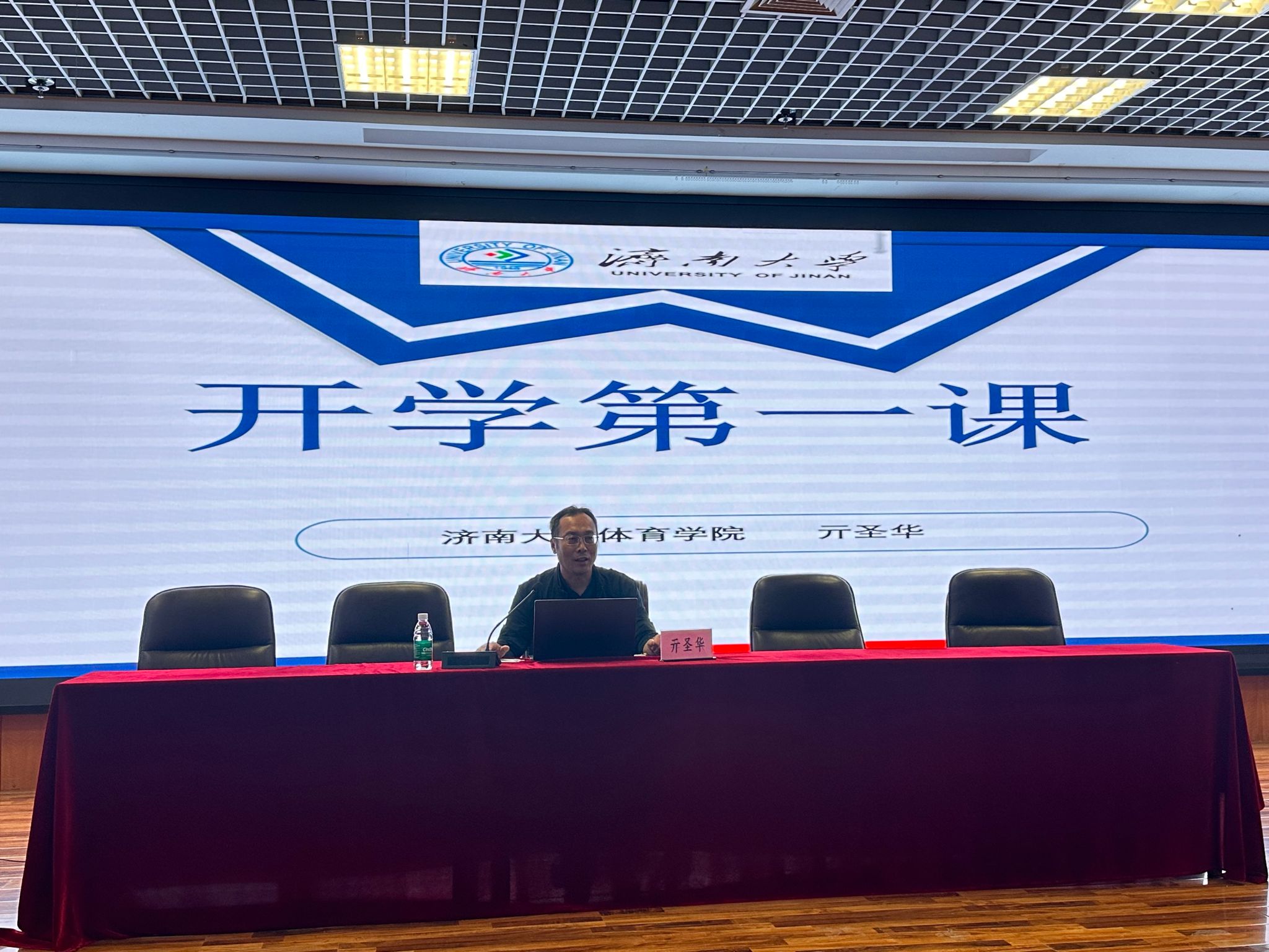会议最后,进入第四阶段院长亓圣华为学生讲授开学第一课,亓圣华围绕新生成长需求,以“认知我的大学、适应我的大学、我的大学能力”为核心展开授课,为全体新生搭建起从“新生”到合格大学生”的成长框架。他简要介绍了太阳成集团tyc41183及tyc41183太阳成集团的办学优势与专业特色,帮助新生建立对母校的认知;针对体育专业学习特点,给出训练与学业平衡、融入集体生活的建议,助力新生快速适应大学生活;同时强调新生需注重创新实践、沟通协作与终身学习能力的培养,并结合国庆主题提醒大家将能力提升与体育强国建设相结合,以过硬本领扛起时代责任。