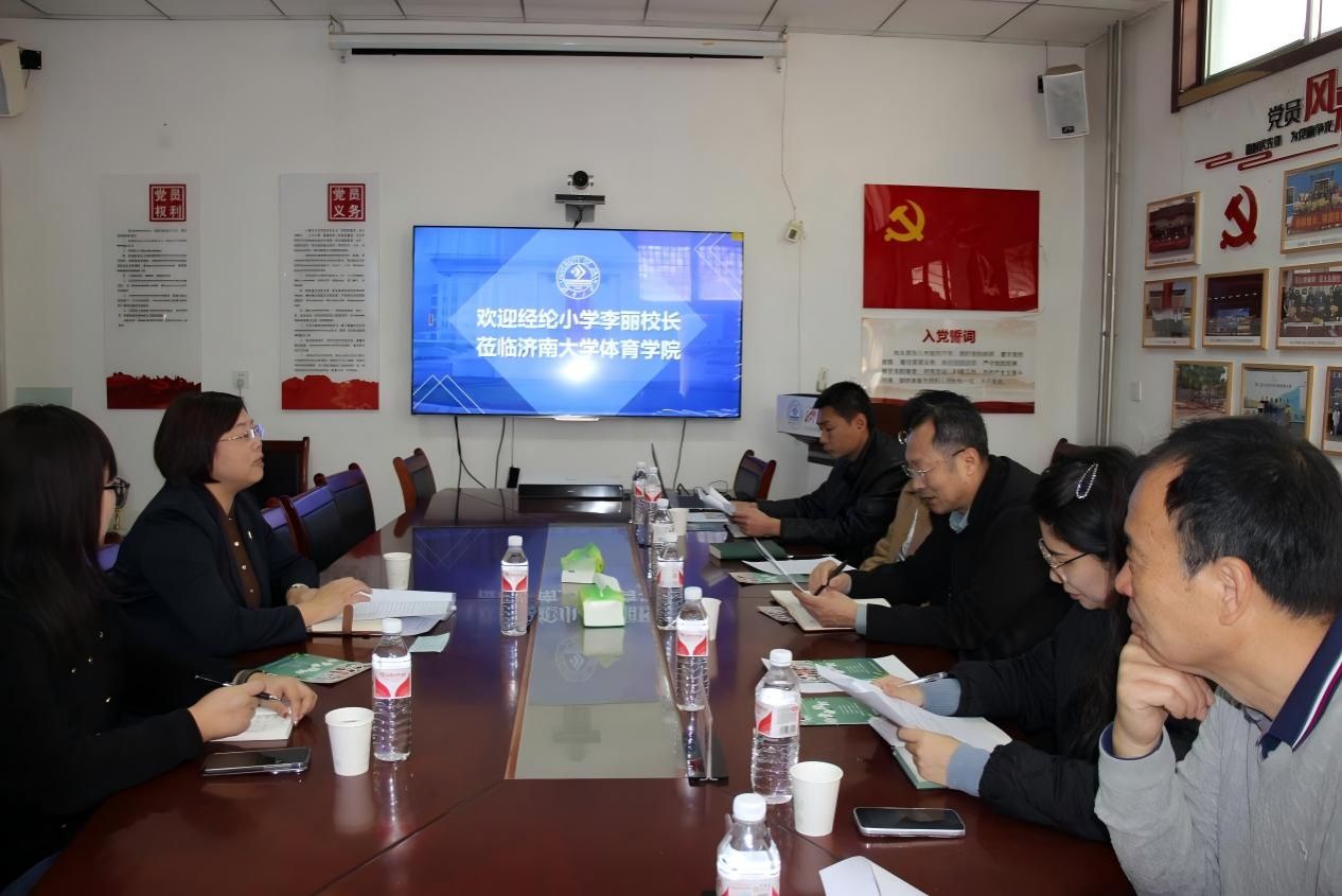 11月28日上午,济南市市中区经纶小学党支部书记、校长李丽一行到访tyc41183太阳成集团,双方就共建“教联体”进行座谈。院长亓圣华,党委副书记郭桂芬及相关负责人参加座谈会,会议由副院长车雯主持。双方就构建高校与小学深度联动的体教融合新模式进行了深入探讨,并初步达成了共建意向。