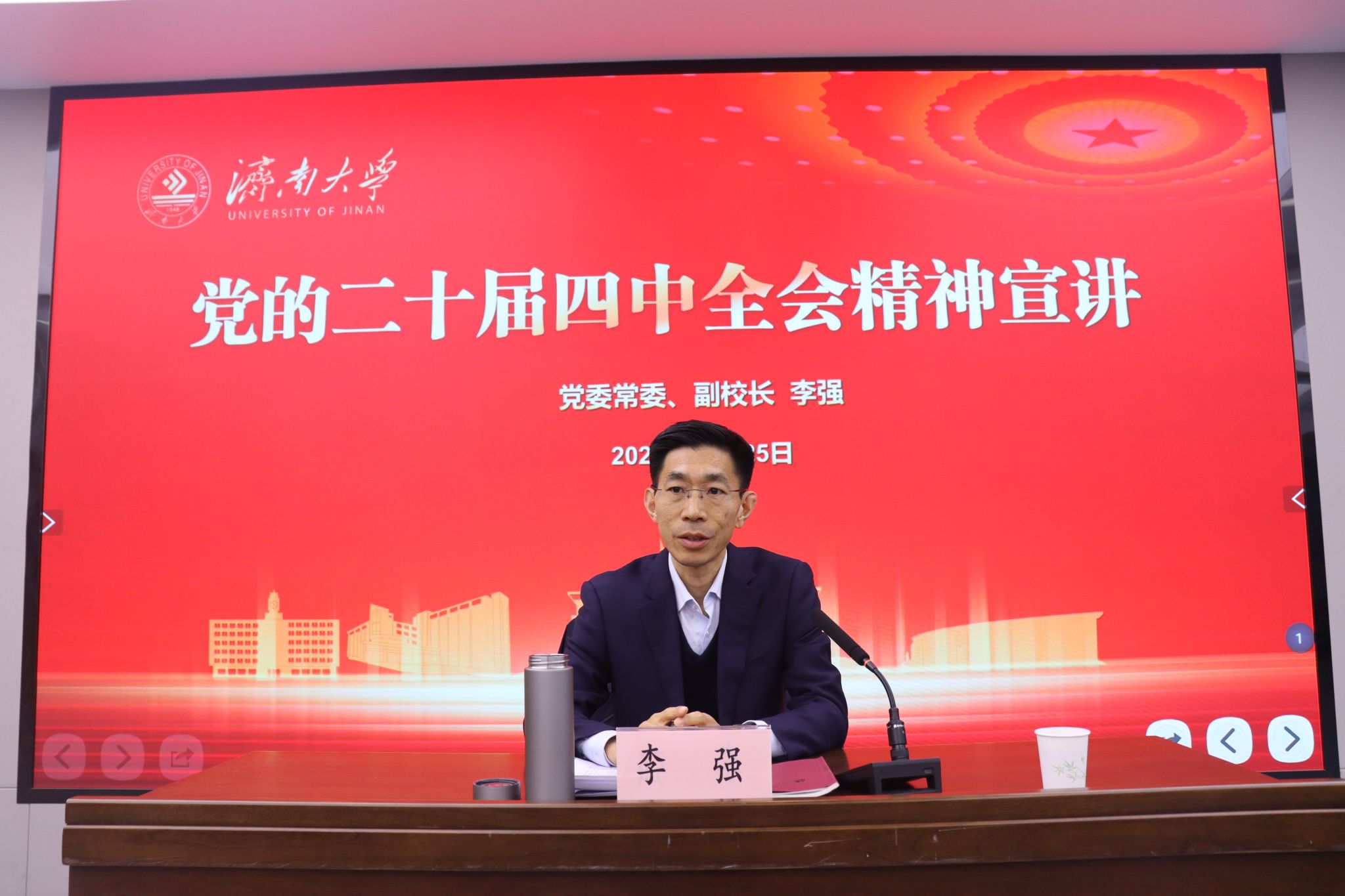 12月25日,学校党委常委、副校长李强为tyc41183太阳成集团师生党员和实验室与资产管理处党员干部作党的二十届四中全会精神宣讲报告。宣讲会由tyc41183太阳成集团党委书记孙成豪主持。